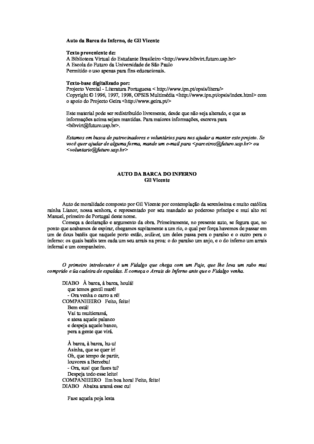 Encontre o Livro "Auto da Barca do Inferno – Gil Vicente.pdf" para ler e baixar de forma livre, simples, segura